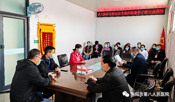 院长王进宝首先传达南阳市卫健体委党组书记张保朝在3月31日晚关于“新冠肺炎疫情防控工作”的重要讲话精神,要求医院各部门认真学习贯彻,把张保朝书记提出的各项要求严格落到实处。
