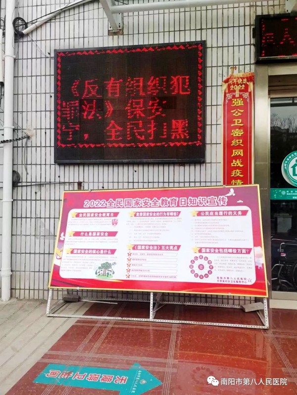 我院高度重视全民国家安全教育日普法宣传工作,结合疫情防控实际,充分运用国家安全法宣传资料,切实履行普法社会责任,积极组织开展宣传活动。加强群众对公共卫生安全、传染病防治、突发公共卫生事件应急管理等方面法律法规的认知,同时强调疫情防控工作长抓不懈,各科室部门应牢牢守住疫情防控底线,确保实现群策群力、群防群控。促进依法防控疫情、维护国家安全和公共安全人人有责的观念深入人心,提高防范和应对风险的意识和能力。