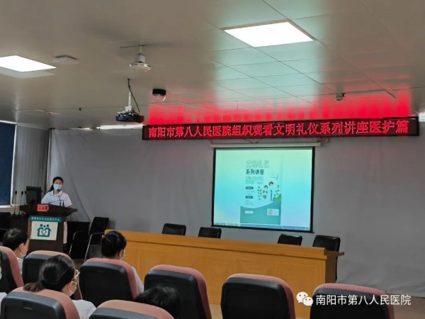 为深入贯彻落实河南省卫生健康委员会精神文明建设指导委员会办公室《关于举办文明礼仪系列讲座的通知》的通知,更好的展示中华传统礼仪文化,强化我院干部职工日常工作、生活礼仪养成,引导广大群众遵循网络文明礼仪规范,7月28日下午,我院在六楼大会议室开展《组织干部职工观看文明礼仪系列讲座(医护篇)》,积极倡导文明礼仪规范,营造学礼仪、知礼仪、习礼仪的良好氛围。