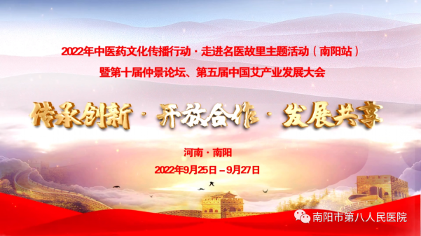 为深入贯彻落实习近平总书记视察南阳重要讲话和指示精神,推动中医药传承创新、经贸合作和产业高质量发展,南阳市将于2022年9月26日—27日召开2022年第十届仲景论坛暨第五届中国艾产业发展大会,同期举办全国中医药文化传播行动·走进名医故里主题活动(南阳站)、让世界“中意”中国—中医药文化传承网络主题采访活动。