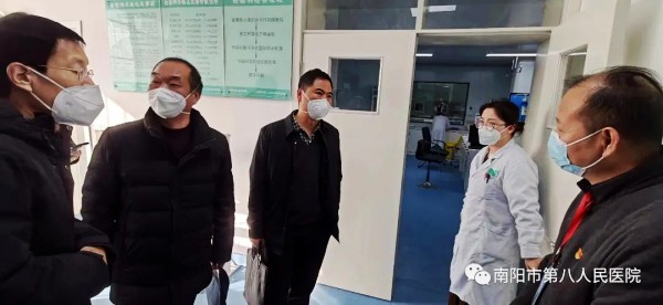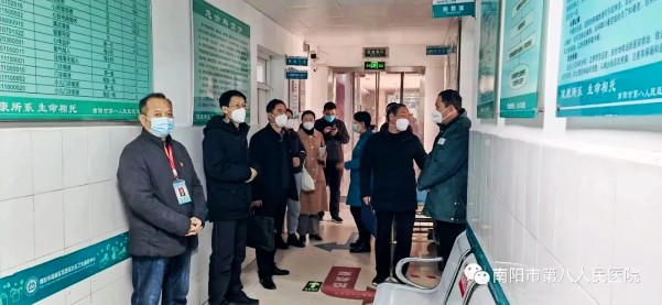 为深入贯彻落实国家、省、市疫情防控指挥部关于做好新冠病毒感染疫情防控工作的重要指示精神,按照上级会议精神和工作部署,进一步完善南阳市新冠病毒感染疫情医疗救治体系,切实提高医疗救治能力,保障人民群众生命安全和身体健康。2022年1月6日上午,南阳市新冠病毒感染救治专家组在巿卫健体委科长李志清的带领下一行8人莅临我院调研指导,我院院长王进宝、副院长王巧慧等负责人陪同检查。
