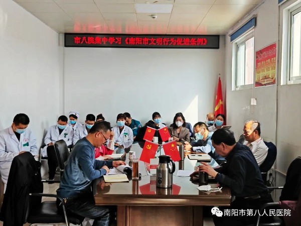 学习中,院党支部书记张世恒带领大家共同学习了《河南省文明行为促进条例》《南阳市文明行为促进条例》,并对制定《条例》的背景、重大意义、指导思想和内容进行了详细解读;结合市卫健体委工作要求和我院精神文明创建工作,提出了如何推进文明礼仪、文明行为、文明服务等落实提升的建议措施。