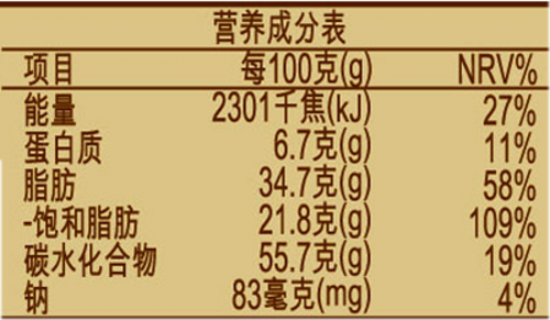 下图所示的营养标签是一种高能量、高糖、高脂和高盐食物。