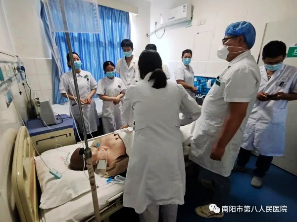 演练正式开始,针对患者出现输液反应后一系列病情变化医生和护士的抢救流程等情境进行模拟,重点检验了医护人员的操作流程是否规范、各种急救技术和急救设备是否熟练掌握、医护团队间协调配合是否到位等方面。演练过程紧张有序,明确分工,密切配合,分秒必争。演练结束后,科主任和护士长分别对演练过程进行了点评,对存在的问题进行了指导。