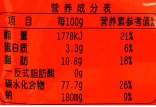 下图所示的营养标签是一种高能量、高糖、高脂和高盐食物。